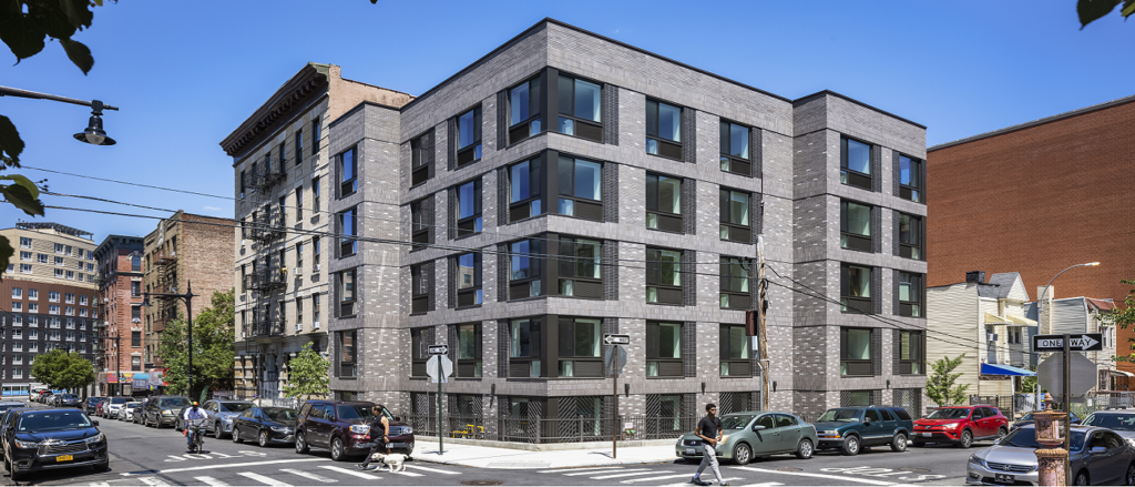 Park and Elton, a development with 38 residential units consisting of two five-story buildings, correspond to the Melrose Commons Urban Renewal Plan providing a range of affordable housing choices to support diversity. The sister buildings exemplify the goal of New York City’s affordable housing mission; providing quality housing through high design input and cost effective measures. The use of simple materials in a creative way resulted in these modest buildings. The subtle volume and height of Park and Elton maintain the human-scale of the public realm. The simple modern cornice and the differentiation of the window header detail with the application of the soldier brick pattern references the historical brick clad buildings found throughout the district.
