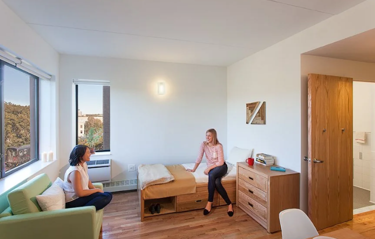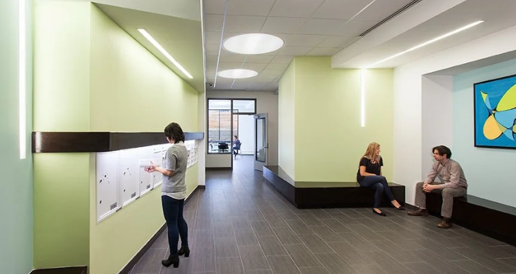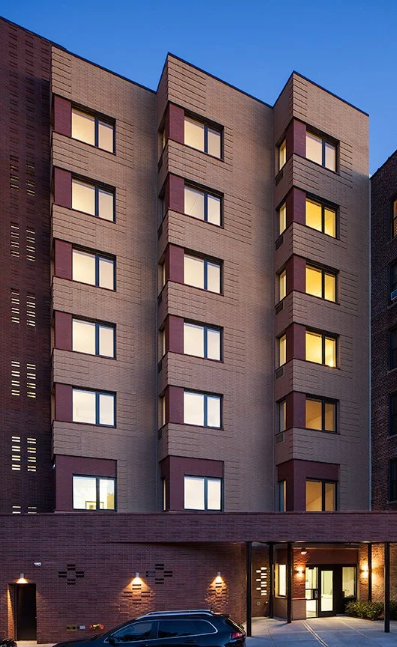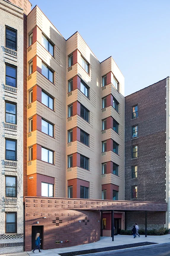 True Colors Bronx (TCBx) is the second housing development from the True Colors Foundation and the West End Residences, furthering the mission of providing supportive housing for formerly homeless LGBT youth in all five New York City boroughs. True Colors Bronx provides independent permanent housing to formerly homeless LGBT youths, many of whom are supporting themselves for the first time. We created a design that ties into the context of the adjacent 1920s apartment buildings to the north and south, setting the base of TCBx to follow the line of the street while the upper floors set back in a rhythm similar to the building to the south. The brick pattern is a modern version of the expressive detailing throughout the neighborhood, including a masonry screen, accent color brick corners, and projecting bands of brick throughout the upper floors